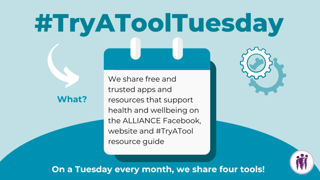 #TryAToolTuesday is a social media initiative that we launched in September 2023, info here. The aim is to raise awareness of free and trusted apps and resources to help people improve and manage their health and wellbeing.
